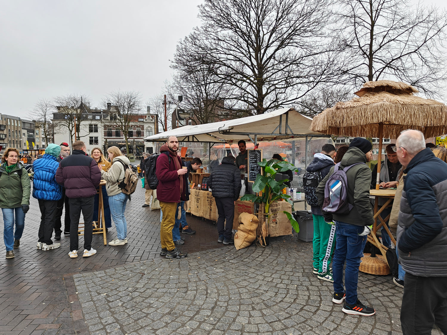 Voor ons is de markt niet alleen een plek waar we heerlijke drankjes maken en vers geroosterde koffiebonen verkopen. De markt is een plek waar we samenkomen met de lokale gemeenschap in Nijmegen, waar we de vertrouwde gezichten zien, vragen hoe het examen van afgelopen week ging en opgaan in onze geliefde gemeenschap.